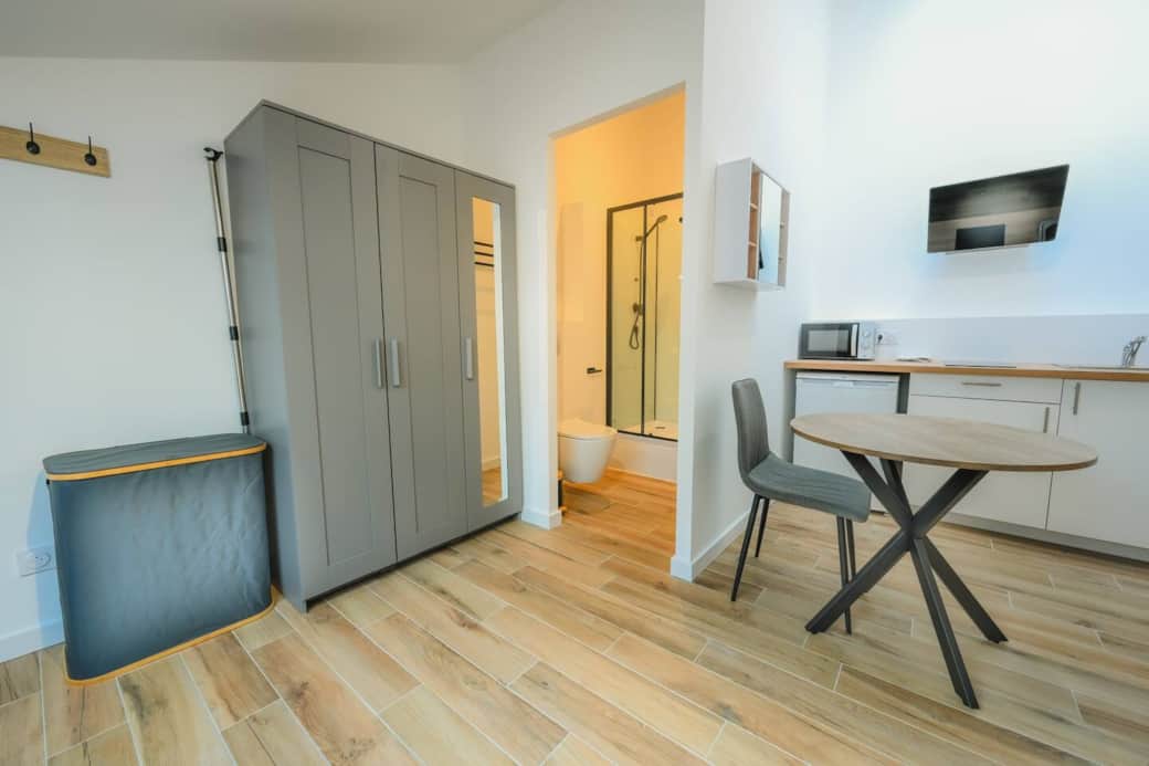 Blender, Coffee machine, Cooking utensils, Dishwasher, Kitchenette, Oven, Refrigerator, Toaster