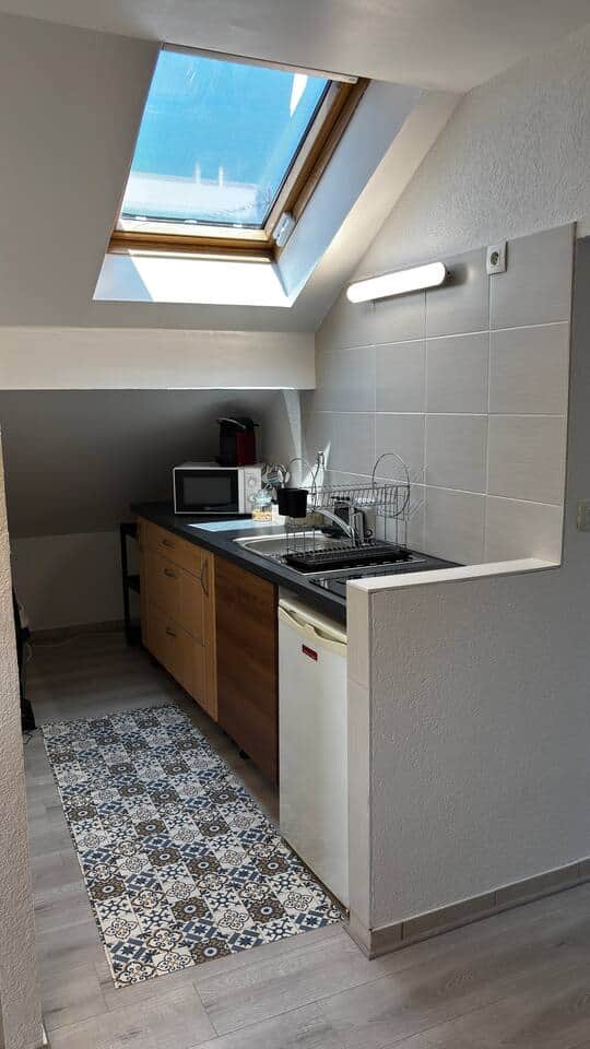 Coffee machine, Cooking utensils, Kitchenette, Microwave, Refrigerator