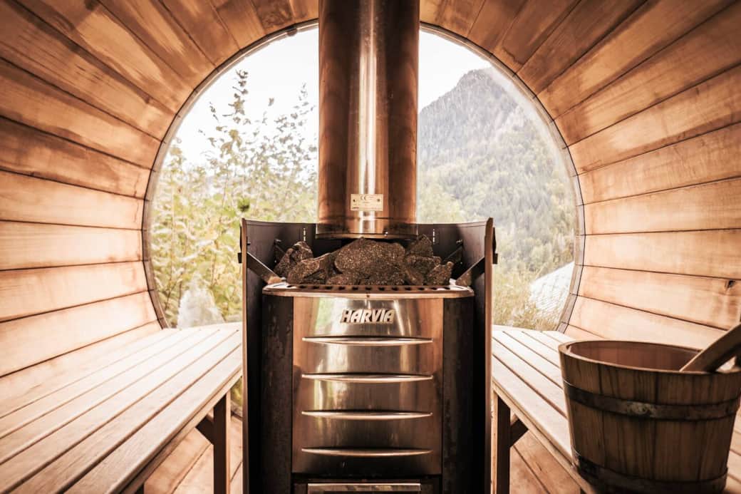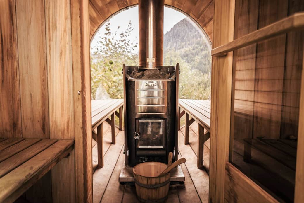 ∙ Un sauna extérieur à feu de bois pour une détente totale après une journée active