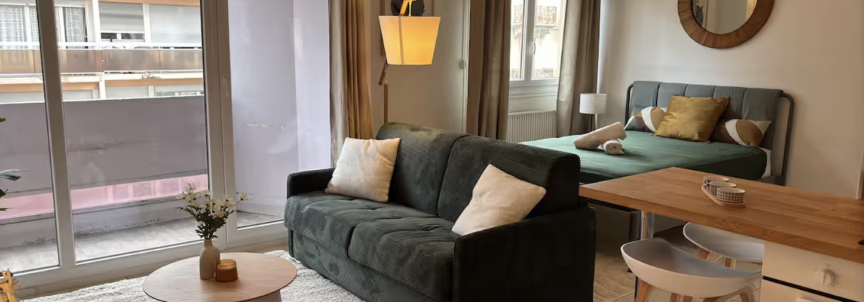 Découvrez “L’Escale”, un grand studio cosy rénové avec soin mêlant design moderne et élégance. Idéal pour séjours professionnels ou escapades en couple, cet espace chaleureux au 3ème étage d’un immeuble sécurisé avec ascenseur est situé en plein centre-ville et à moins de 5 minutes à pied de la gare. Profitez d’une connexion fibre rapide, d’une Smart TV, d’un accès autonome et d’un équipement complet pour un séjour tout confort, alliant praticité et raffinement.